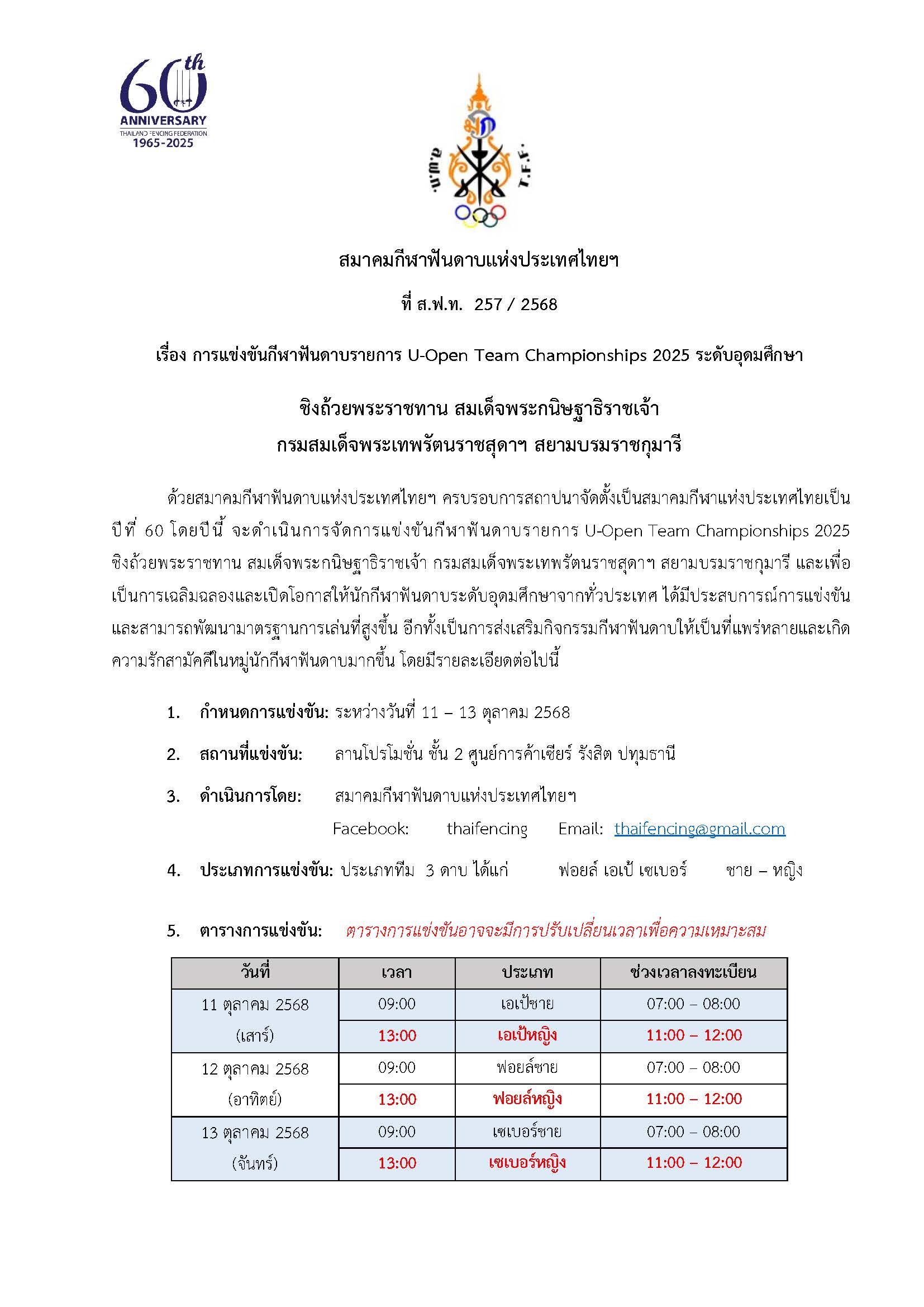 🎯 การแข่งขันกีฬาฟันดาบ U-Open Team Championships 2025 ระดับอุดมศึกษา ประเภททีม 🤺🇹🇭