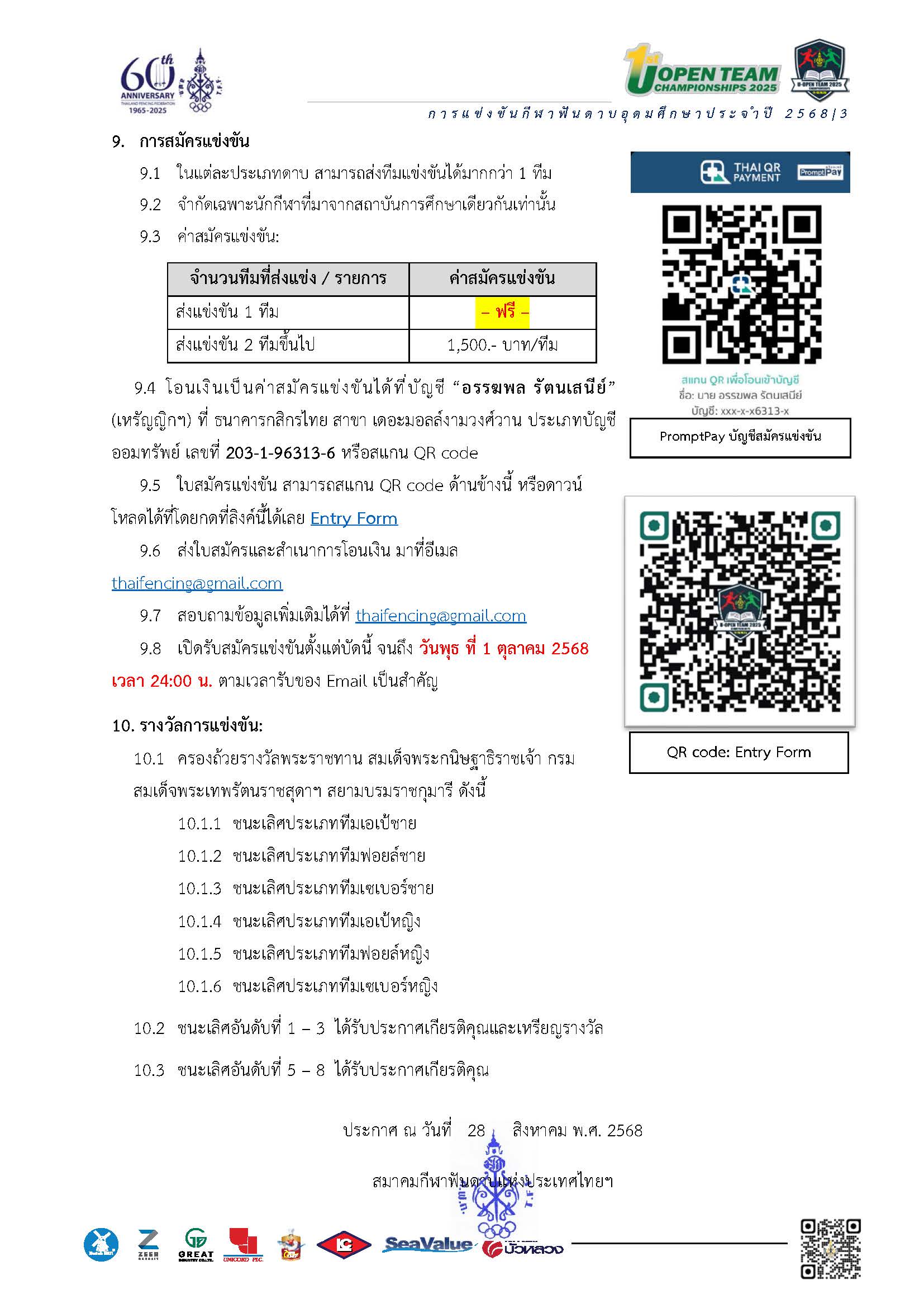 👉 ส่งใบสมัครแข่งขันได้ตั้งแต่บัดนี้ ถึง 24.00 น. 🕛 ของวันที่ 1 ตุลาคม 2568 เท่านั้น งดรับสมัครหน้างานนะครับ 🙏🙏🙏